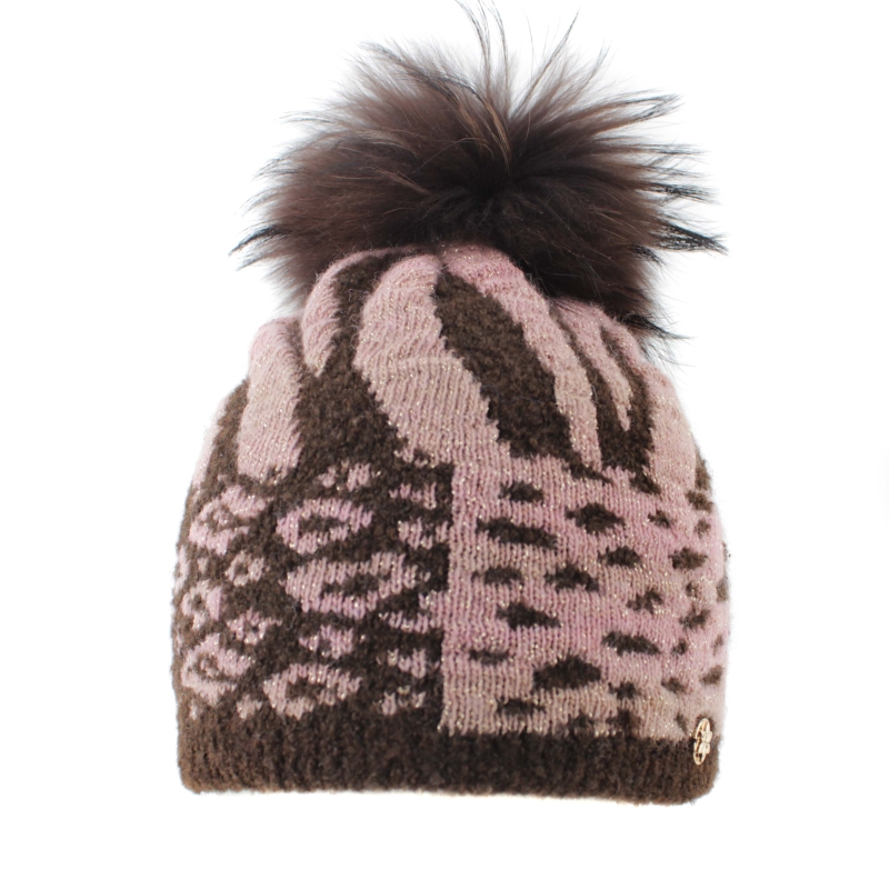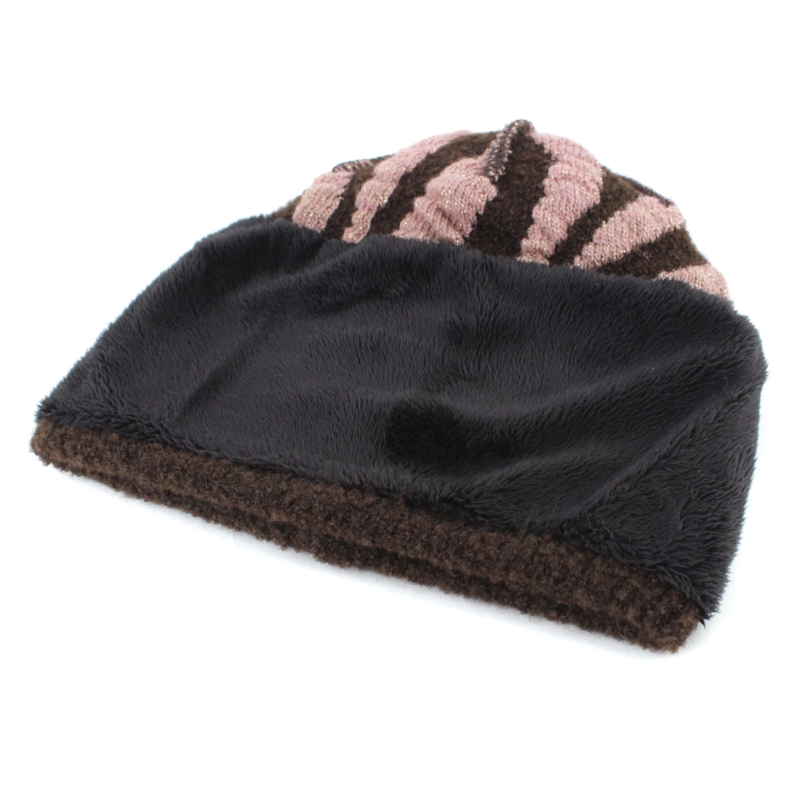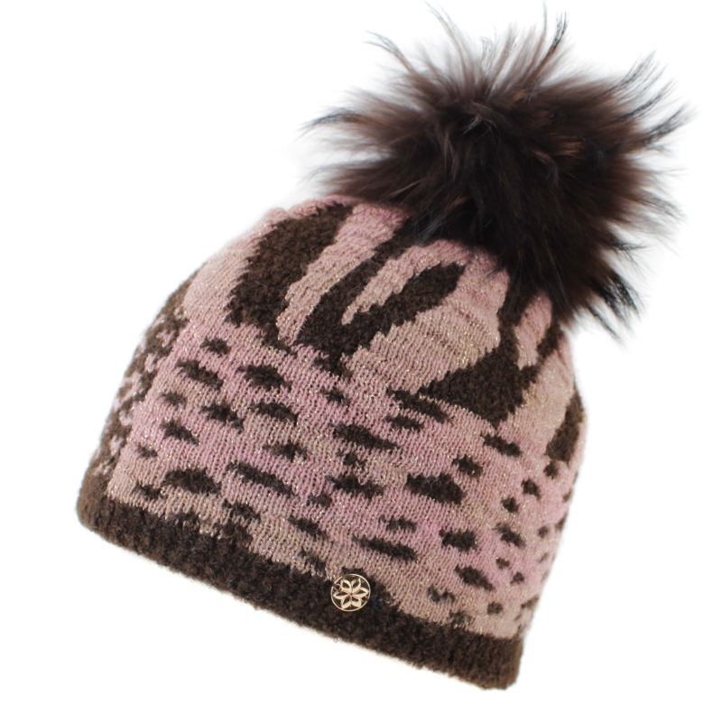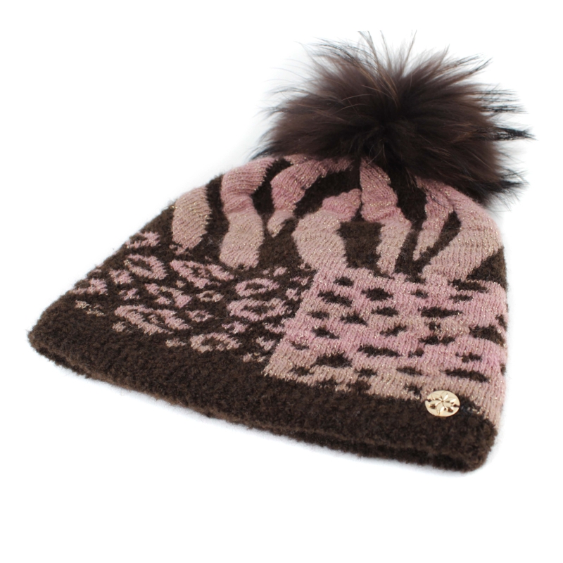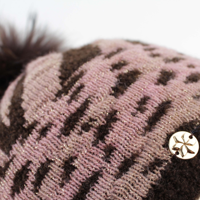 Ladies' Knitted Wool Hat in Brown-Pink with Subtle Golden Threads.