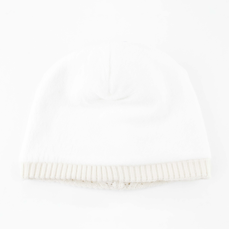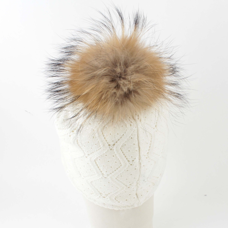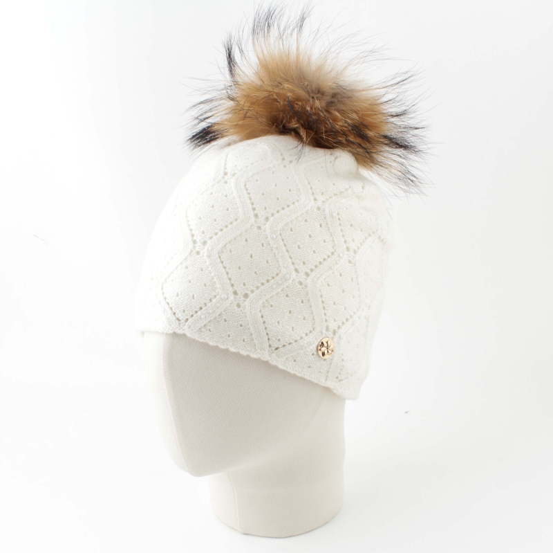 Ladies' knitted hat with natural pompom JG5748, Ecru