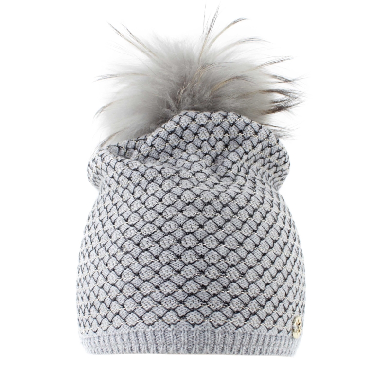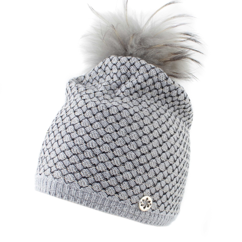Ladies' knitted hat with natural fur pompom JG5328, Grey/Gold