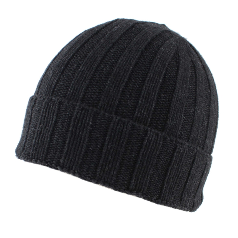 Men’s knitted hat made from a wool blend, featuring a classic rib pattern and clean design.