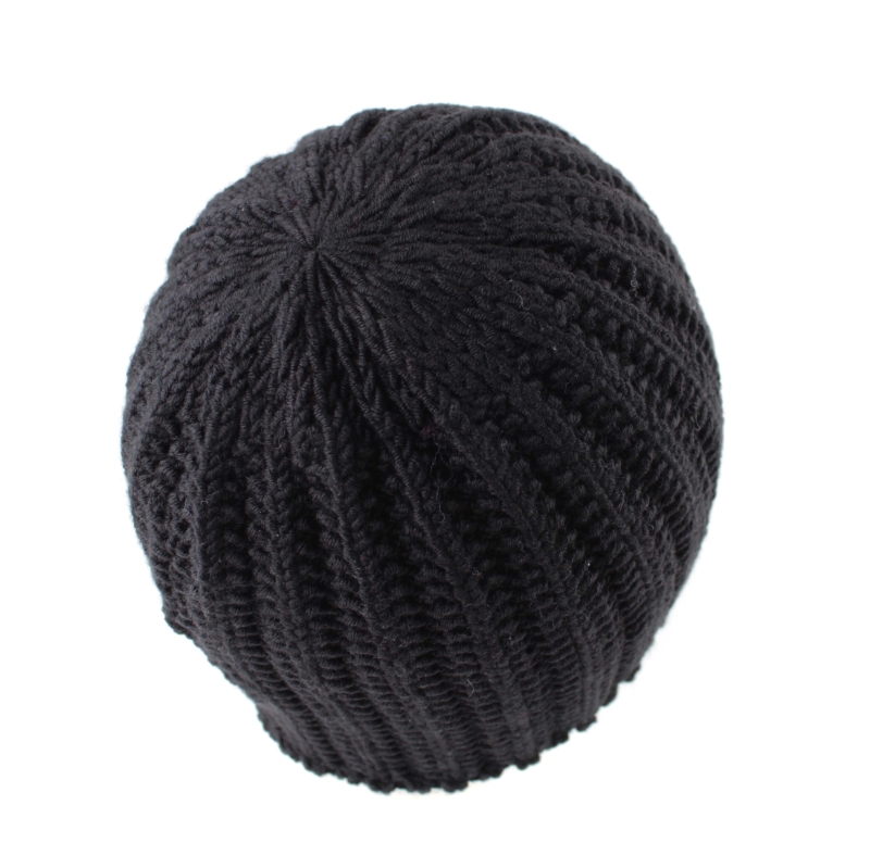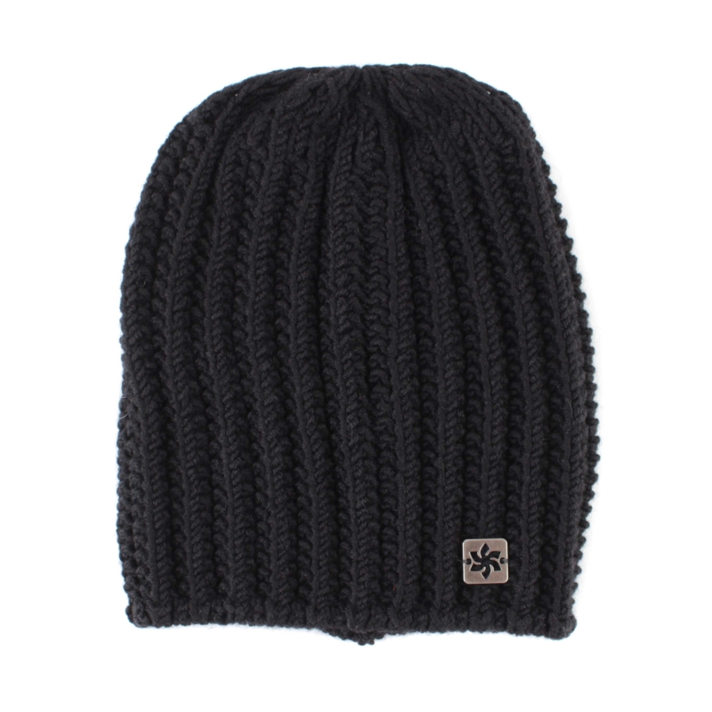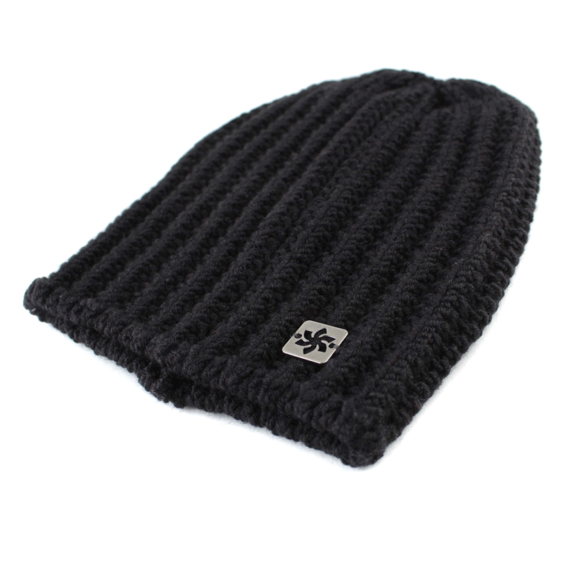 Men’s knitted hat in black, made from a wool-blend yarn.
