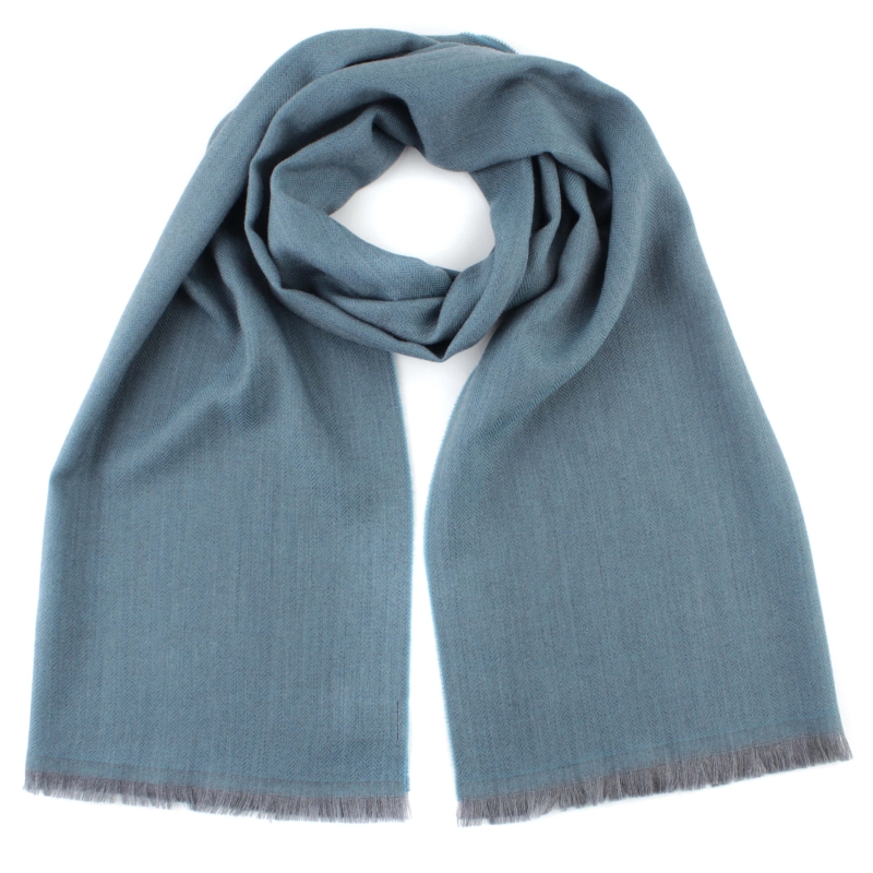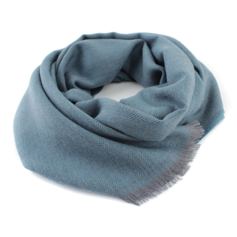Color: classic herringbone weave combining fine grey threads with blue-green tones. A balanced and versatile shade that complements both light and dark coats.