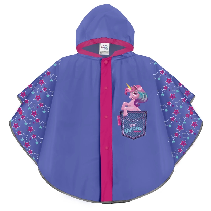 This purple kids rain poncho from the Perletti CoolKids collection is designed for little fans of unicorns and magical themes. The cheerful design brings joy to rainy days, while the practical poncho shape ensures freedom of movement and comfort when worn.