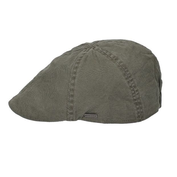 Men’s summer cap in olive green with a stone washed effect, made of soft cotton fabric. The model is lightweight, unlined, comfortable and suitable for warm days, providing a pleasant feel when worn.