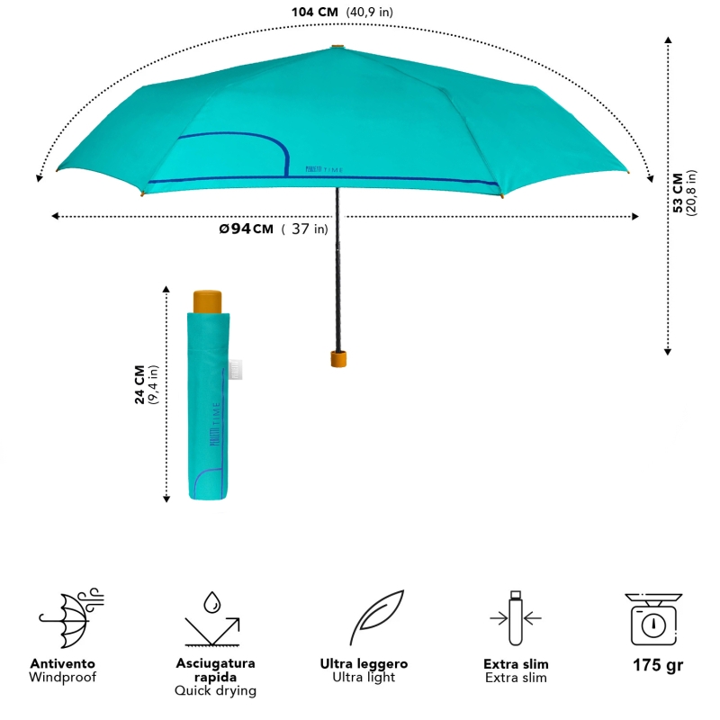 Дамски ултралек сгъваем ръчен чадър Extra Slim | Perletti Time | Тюркоаз