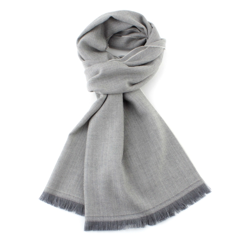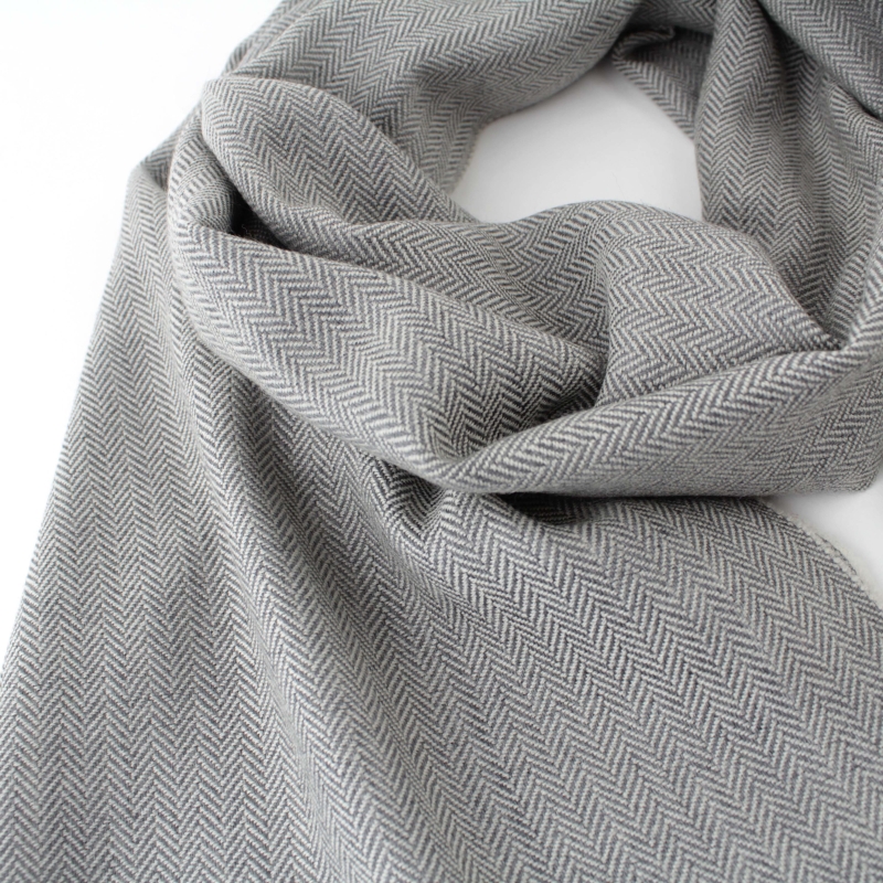 Мек фин шал от висококачествена вълна в десен „рибена кост“.