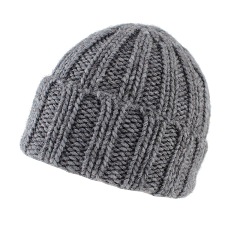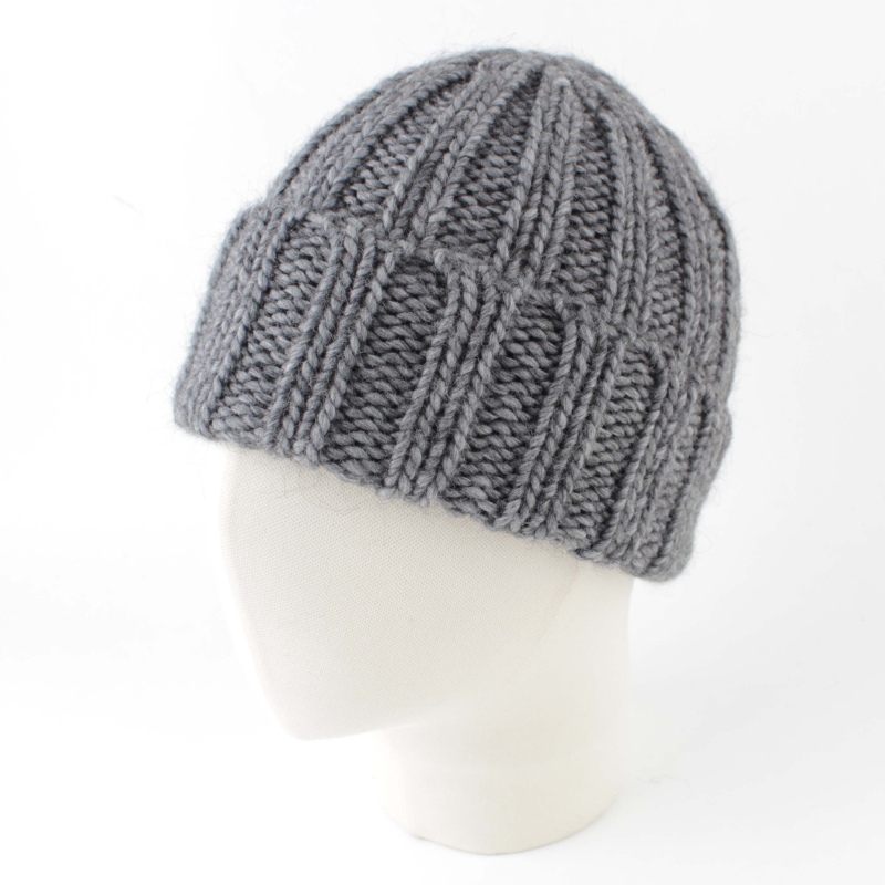 Удобна плетена зимна шапка с едра еластична рипсена плетка и обемна мека прежда.