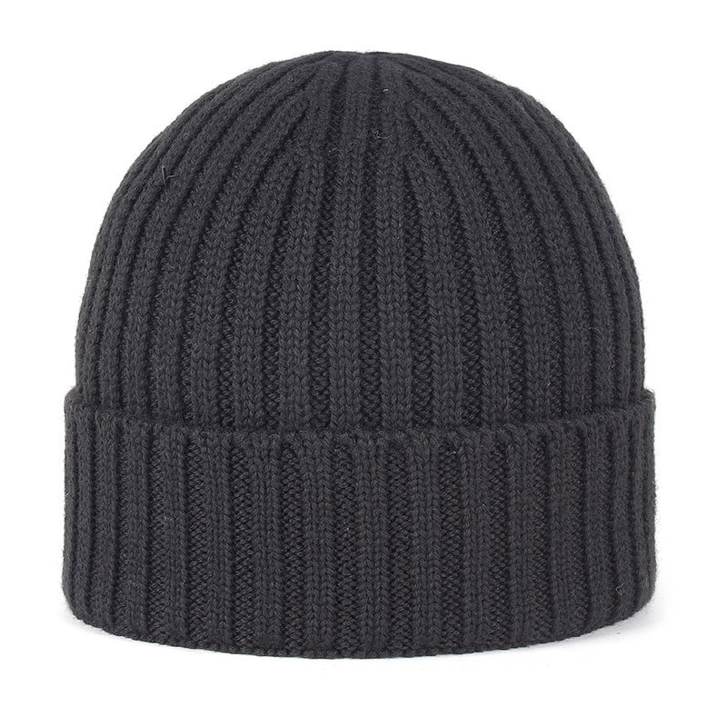 Мъжка плетена шапка с еластична рипсена плетка и обърнат борд, прежда смес с мериносова вълна.