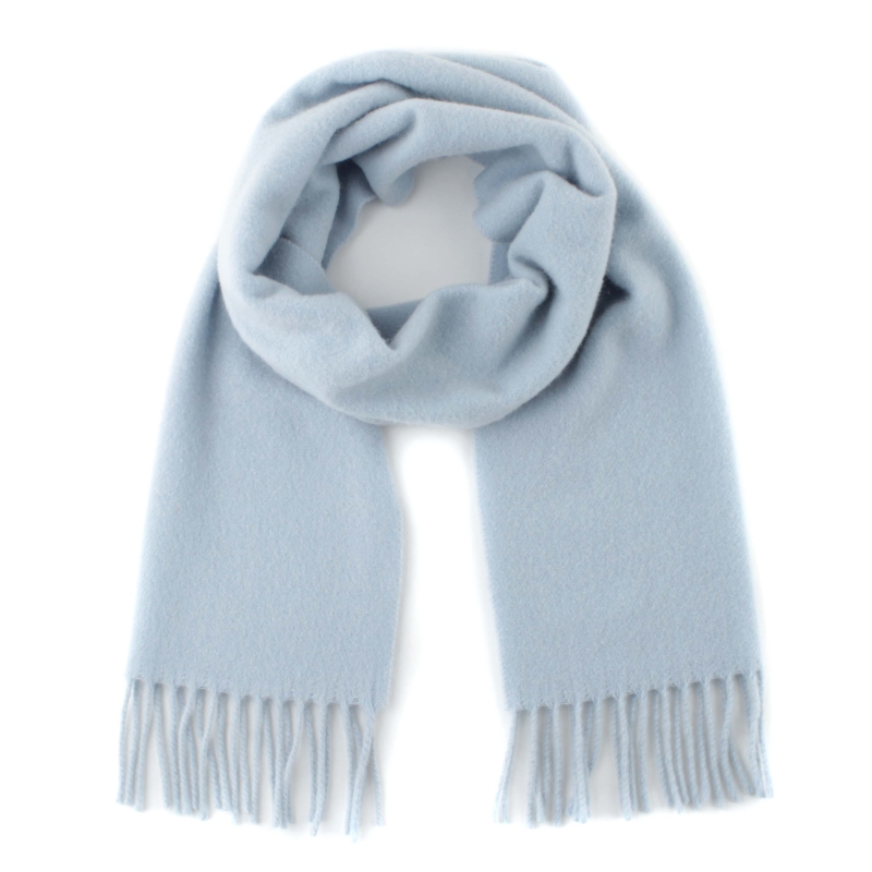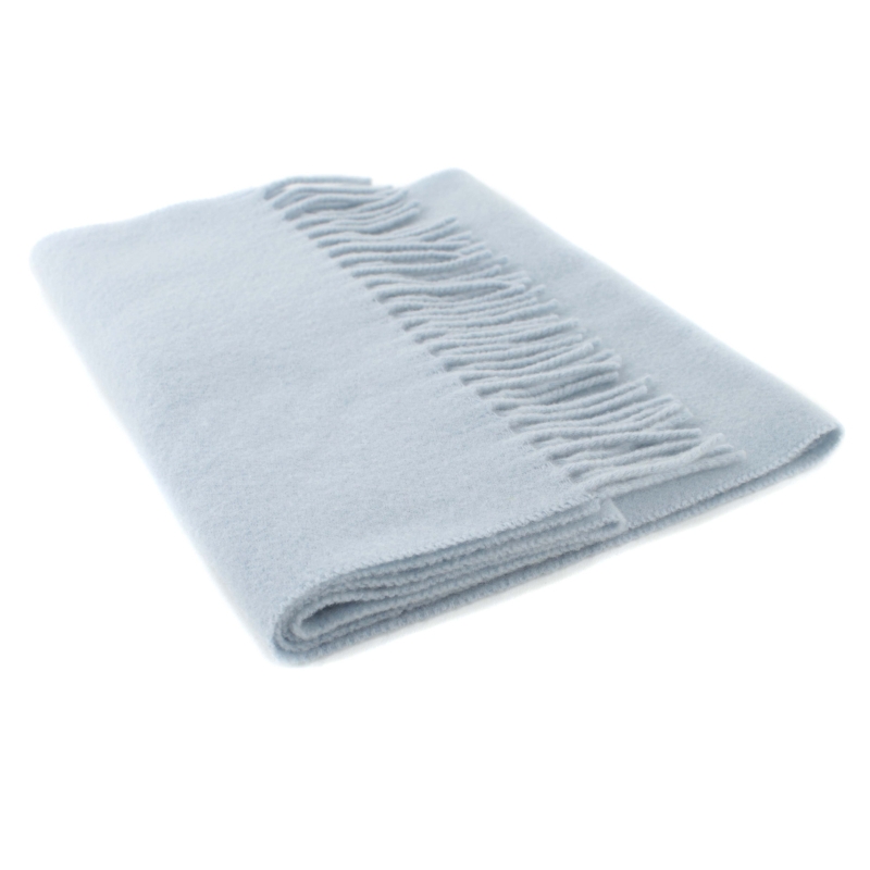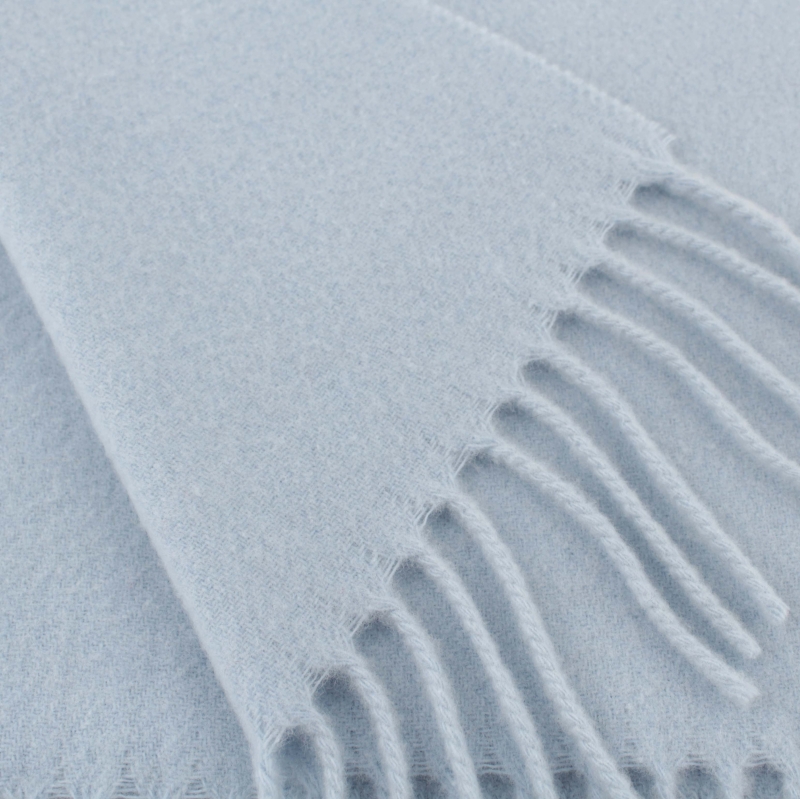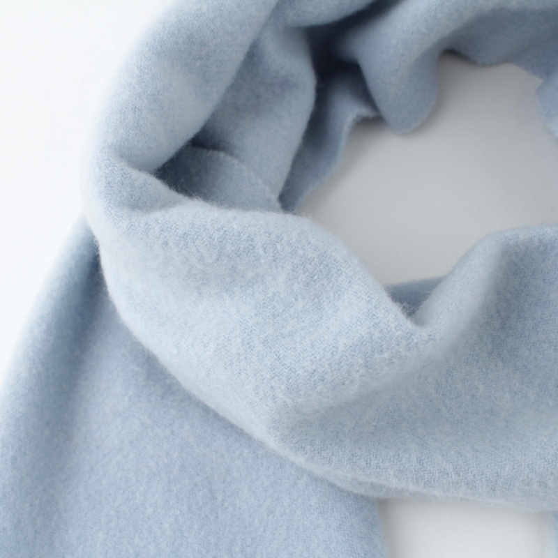Едноцветен топъл шал от кардиран вълнен плат в небесносиньо.