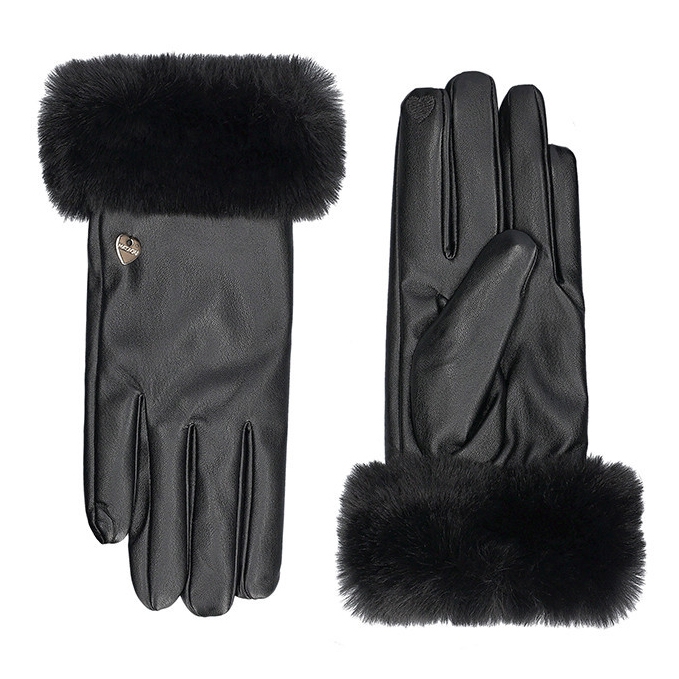 Дамски ръкавици от синтетична кожа с пухкав маншет HatYou GL1585, Черен