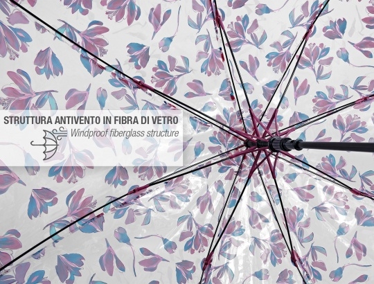 Дамски прозрачен автоматичен голф чадър Perletti Time 26447, Прозрачен/ Листа