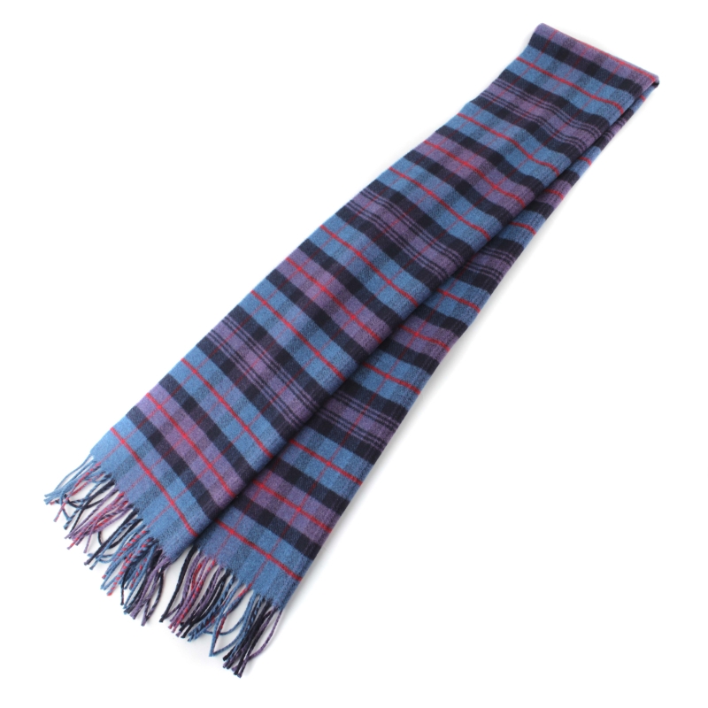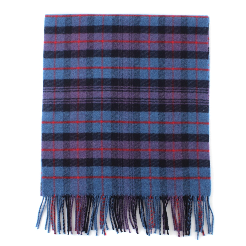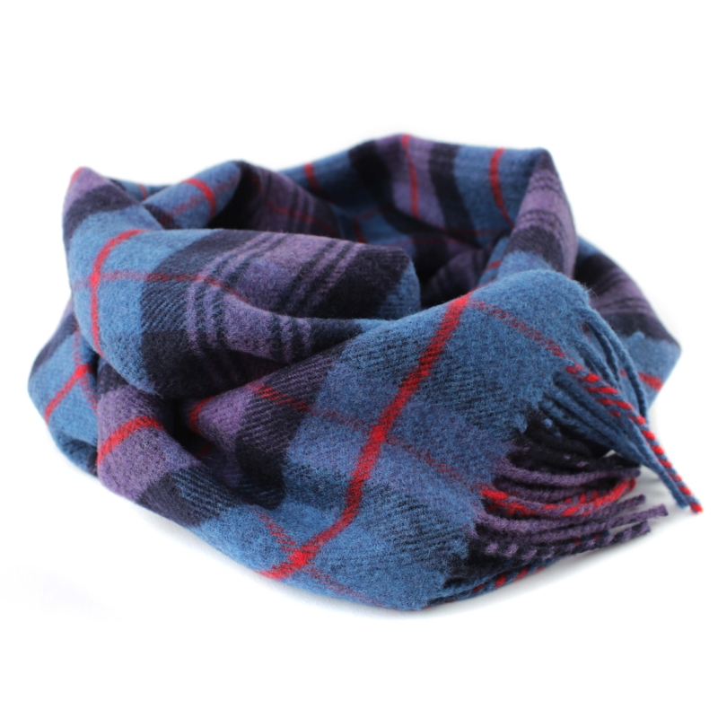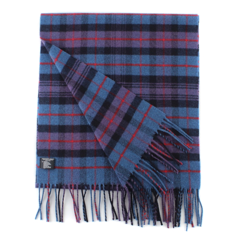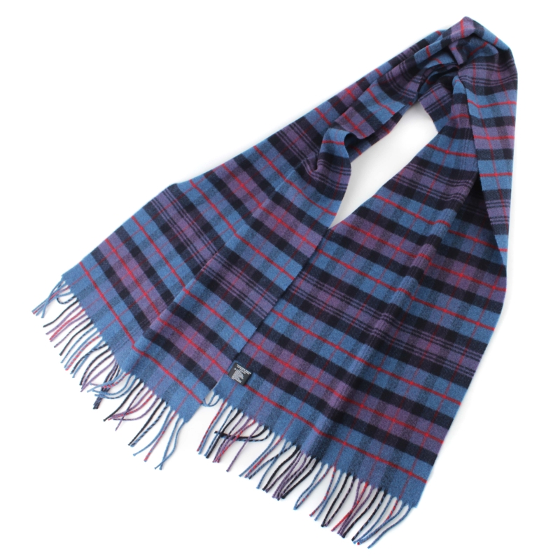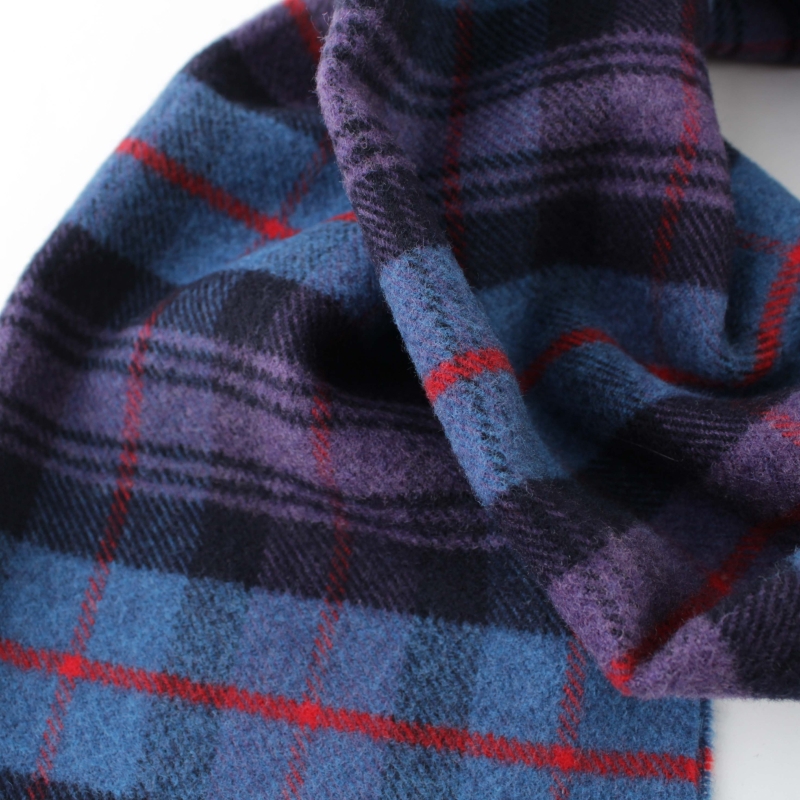 Мек и топъл зимен вълнен шал от фина вълна в синьо-лилаво каре.