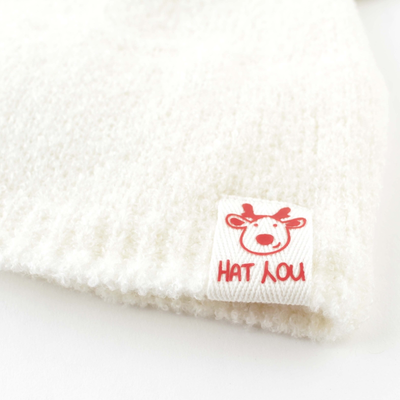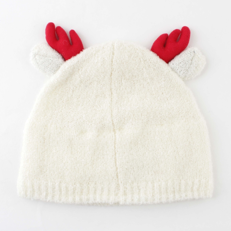 Детска плетена шапка в екрю с еленски рогца и частична подплата от полар.