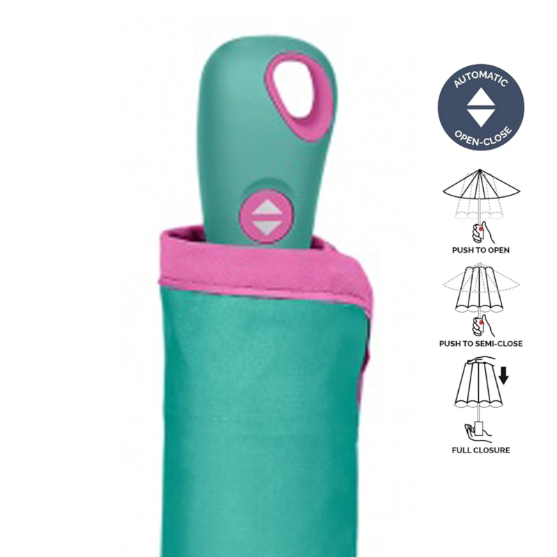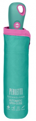 Дамски автоматичен Open-Close чадър Perletti Technology 21808, Тюркоаз
