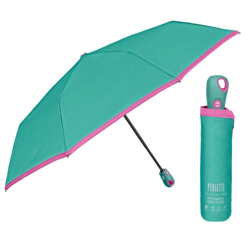 Дамски съваем автоматичен чадър Open-Close | Perletti Technology 21808 | Тюркоаз