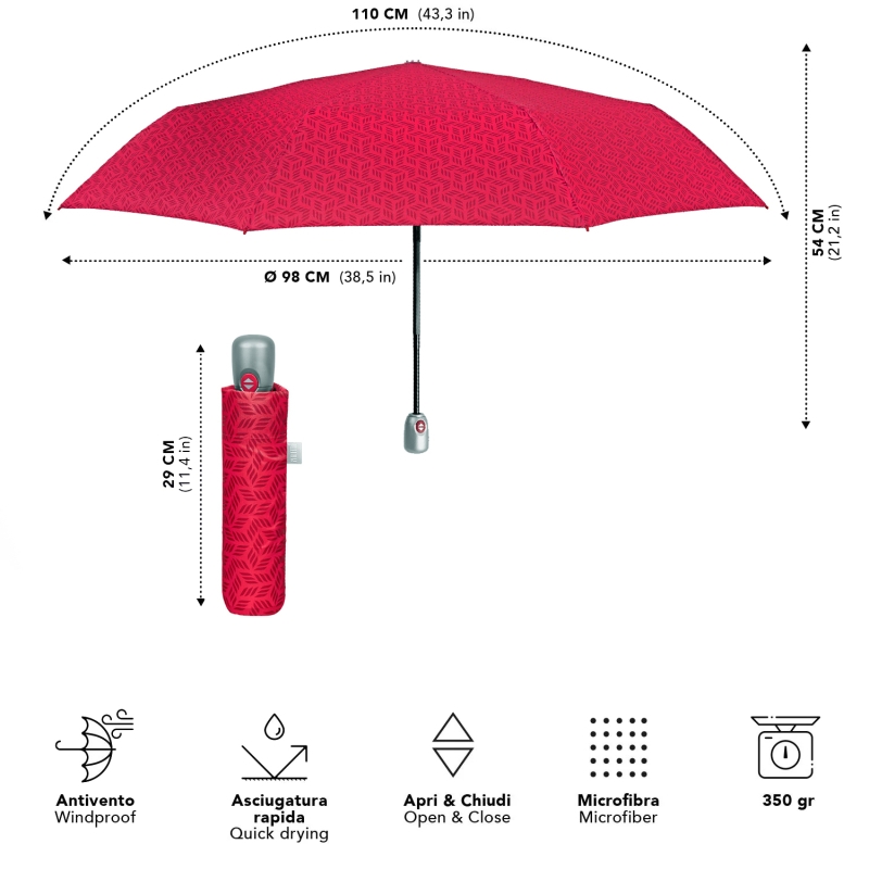 Дамски сгъваем автоматичен чадър Open-Close | Perletti Time 26418 | Червен