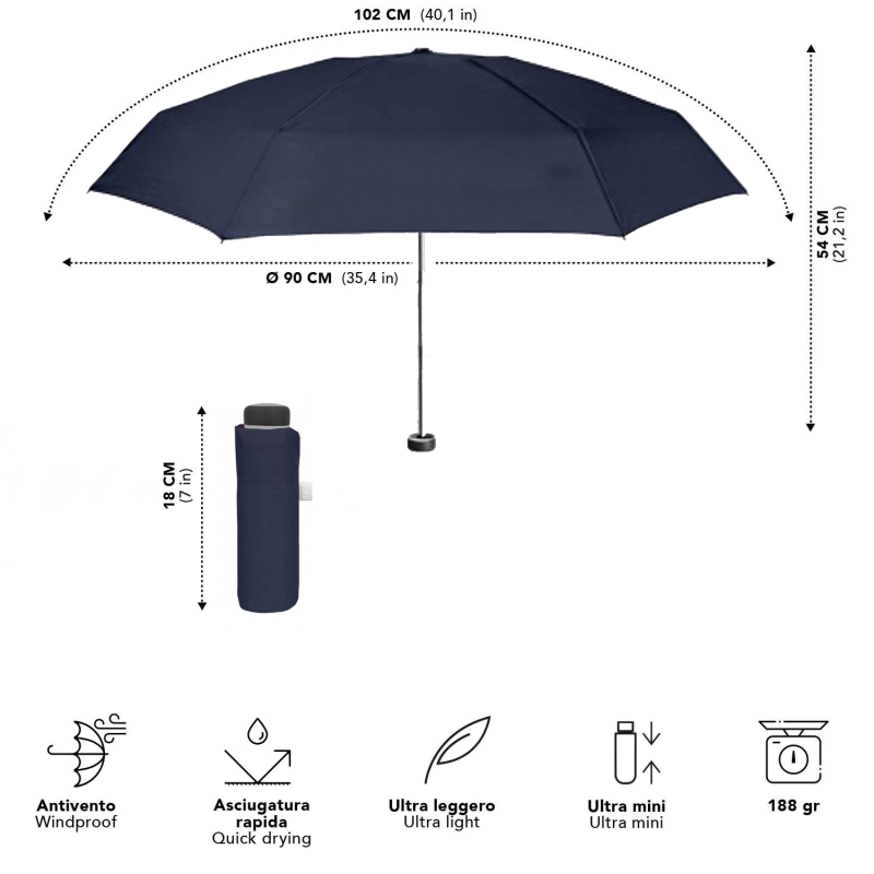 Поради компактния си размер и по-малкия диаметър, чадърът не е предназначен за силен дъжд или силен вятър.