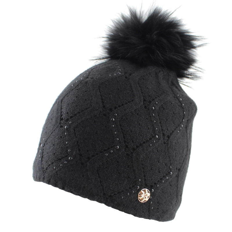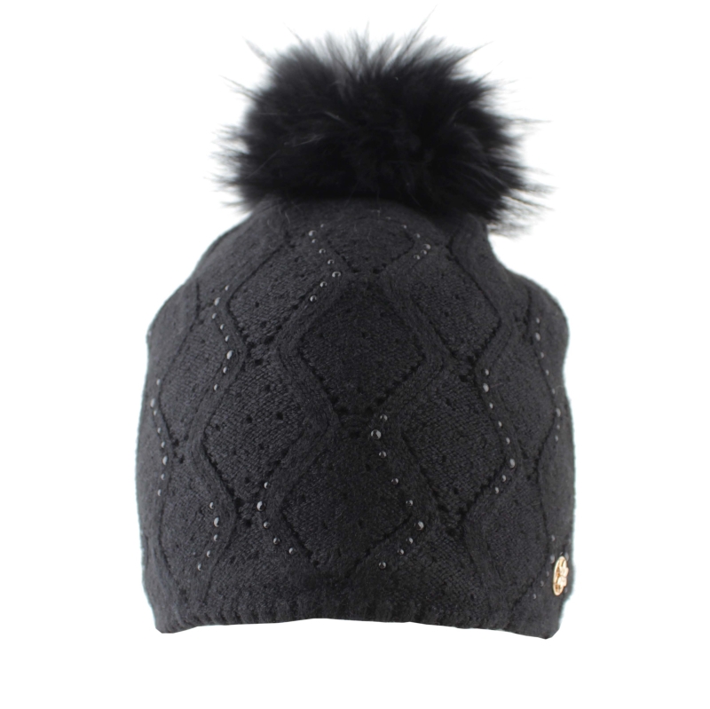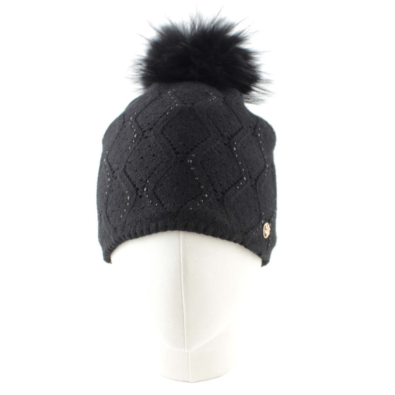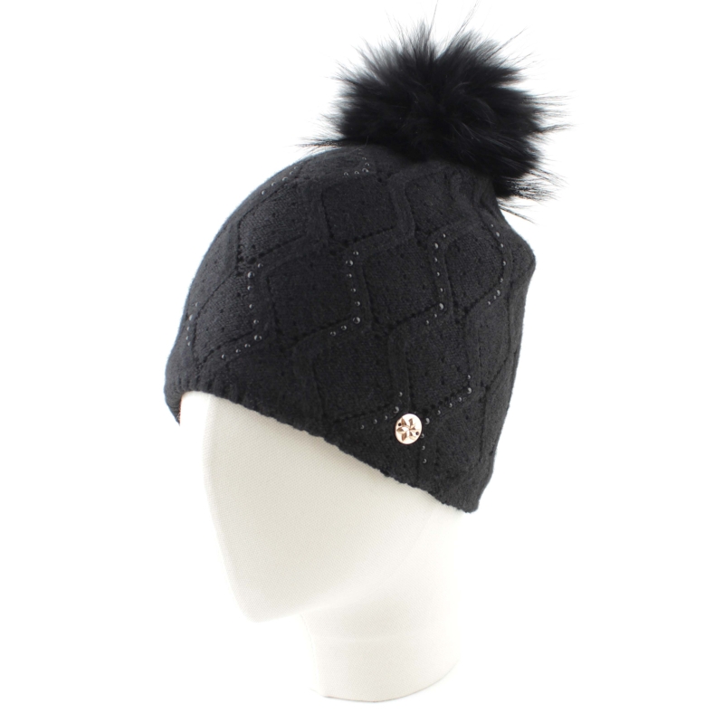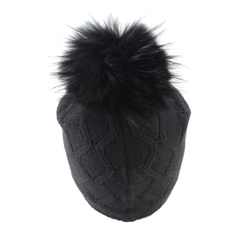 Дамска зимна плетена шапка с естествен помпон Granadilla | Черна