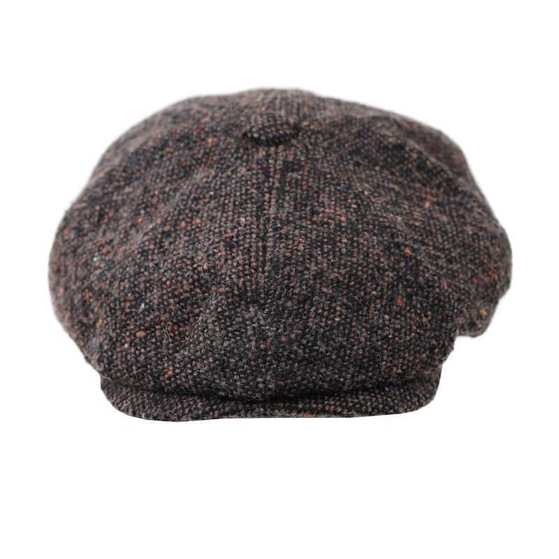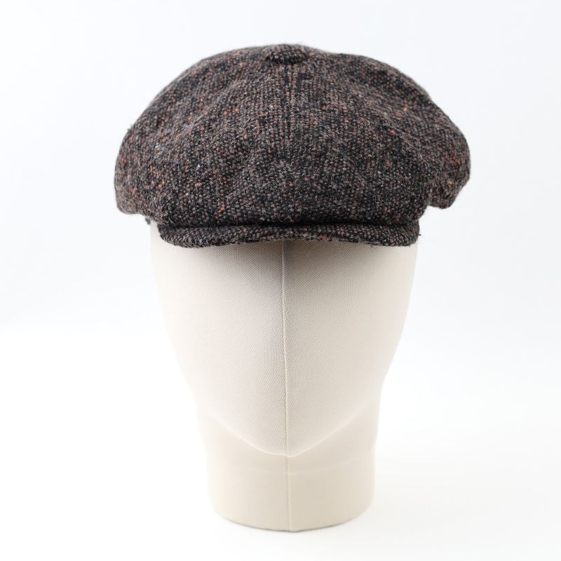 Мъжки вълнен каскет тип Baker boy с твърда козирка и купол от осем парчета в кафяв меланж.