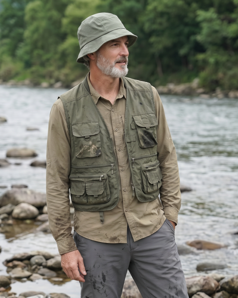 Мъжка лятна рибарска шапка с UV защита от микрофибър MESS | Зелен