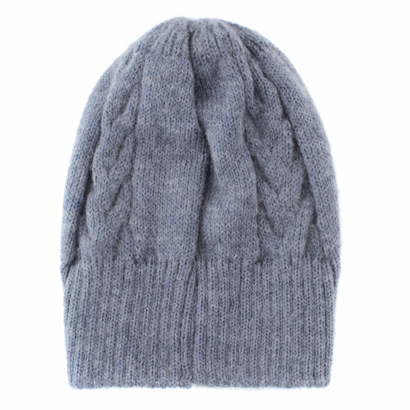 Плетена шапка, изработена от 60% полиакрил, 30% мохер и 10% вълна.