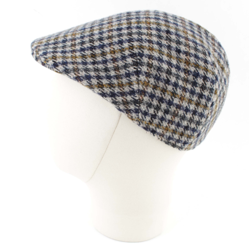 Șapcă bărbătească din lână în pepit, combinație de nuanțe de gri, albastru și maro.