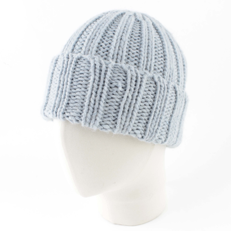 Căciulă de iarnă tricotată, confortabilă, cu model gros elastic și fir voluminos și moale.