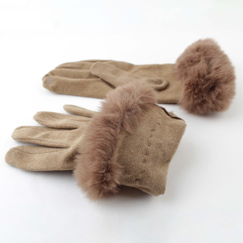 Mănuși damă din material textil cu manșetă pufoasă HatYou GL1457, Camila