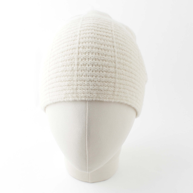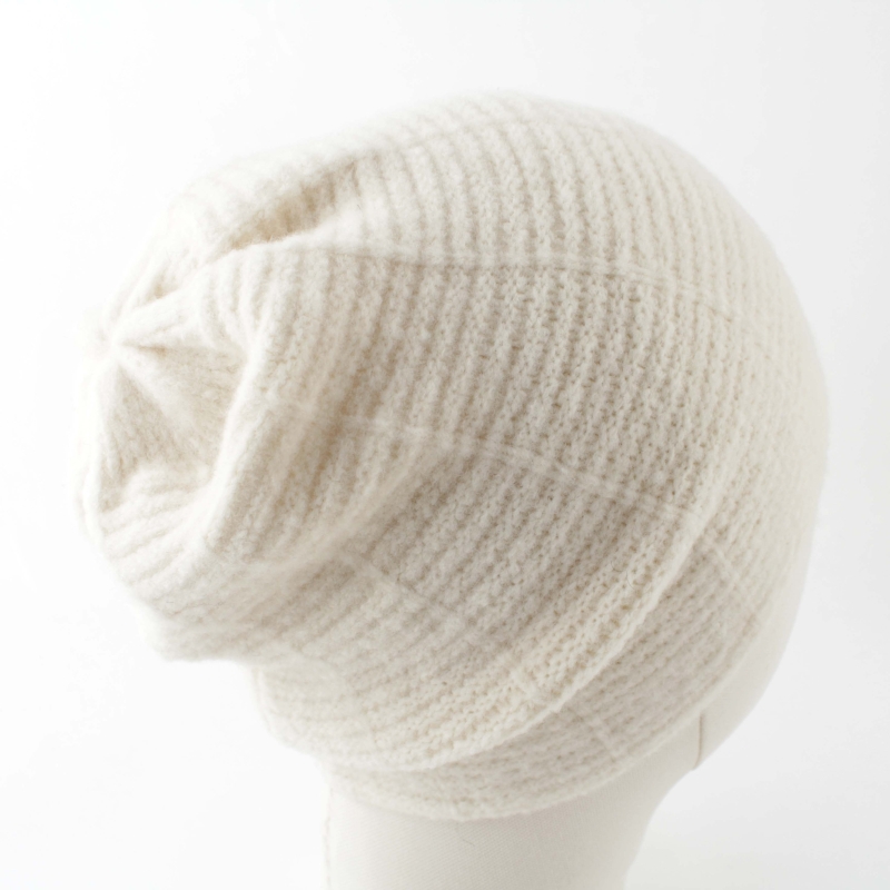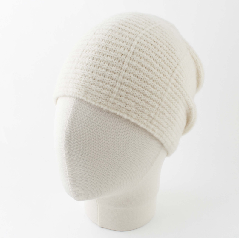 Căciulă tricotată din fire fine și pufoase, cu conținut ridicat de lână.