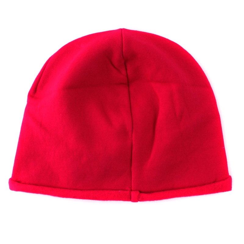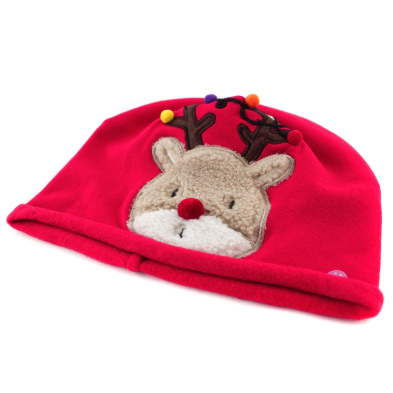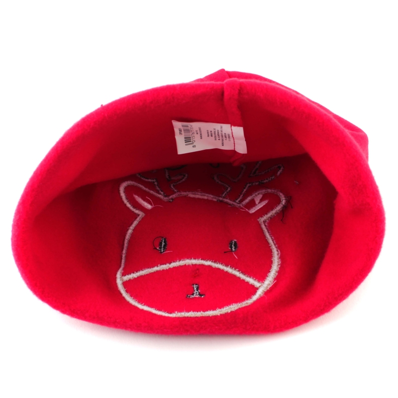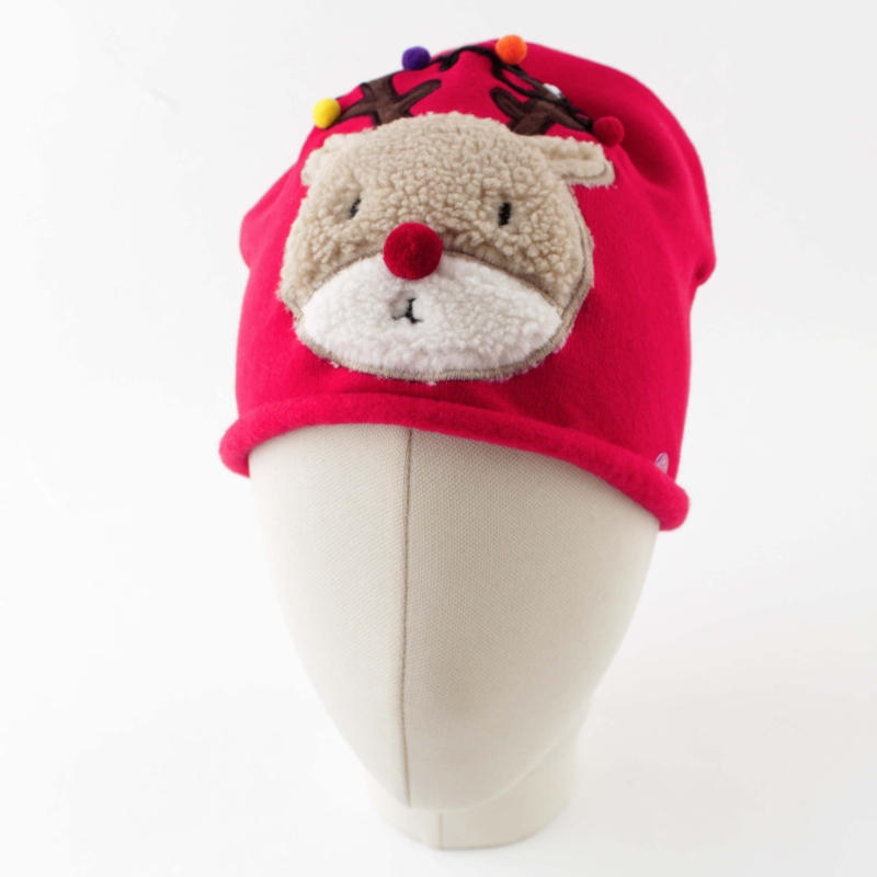 Căciuliță din bumbac pentru copii, de culoare roșie, cu aplicație căprioară.