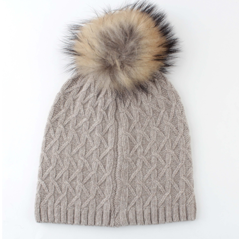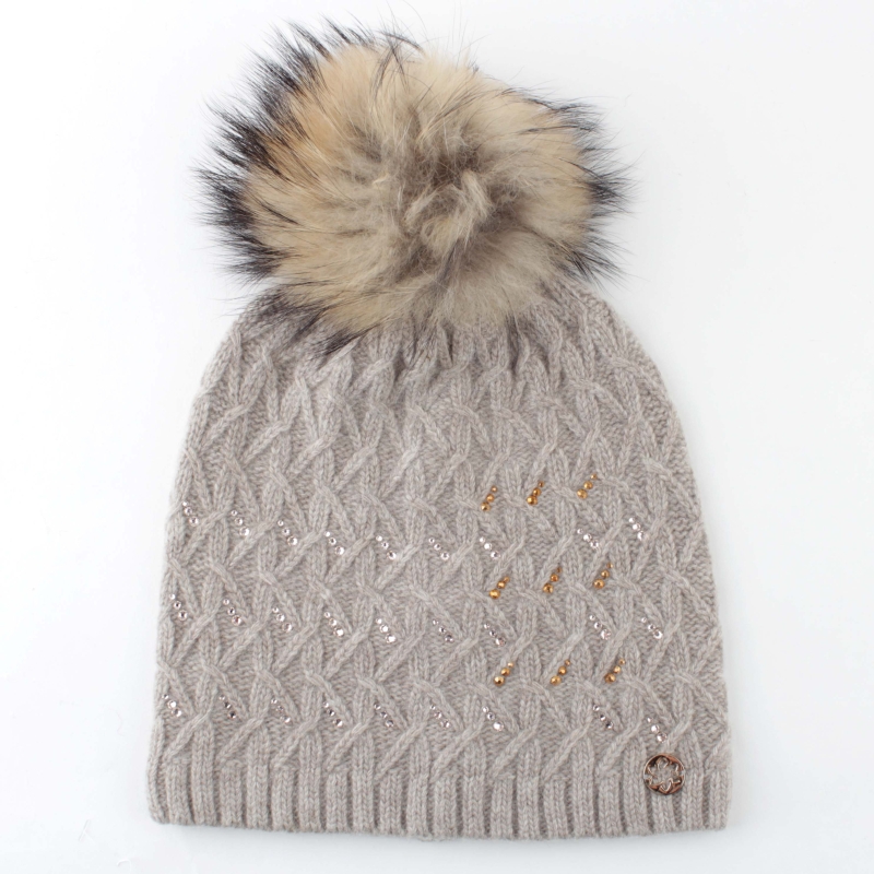 70% lână, 30% caşmir. Decor - cristale Swarovski. Pompon - păr 100% natural / Nyctereutes procyonoides /.