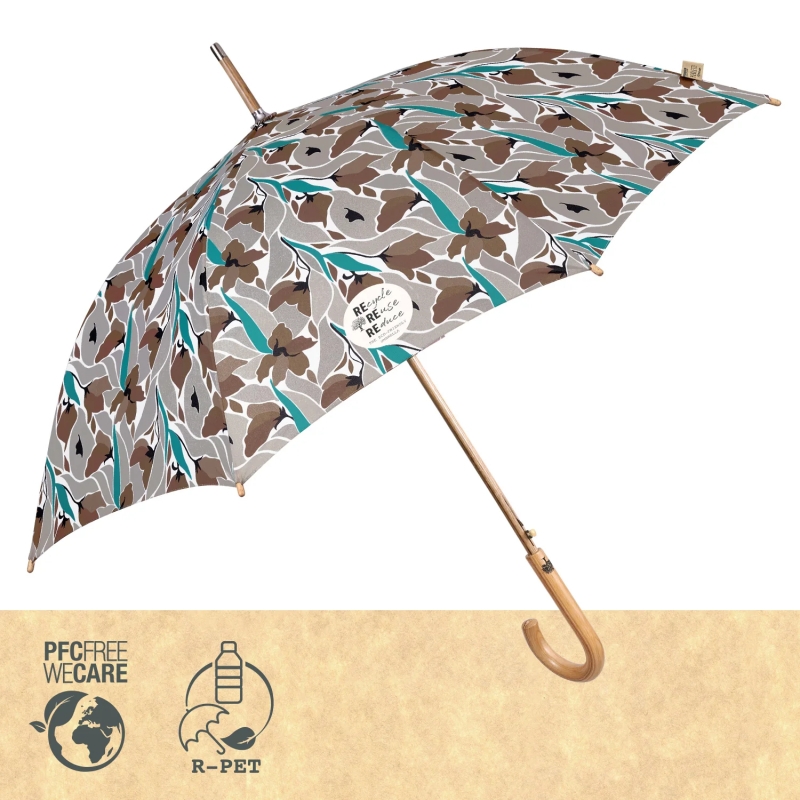 Umbrelă lungă pentru femei, din colecția Perletti Green, cu deschidere automată.