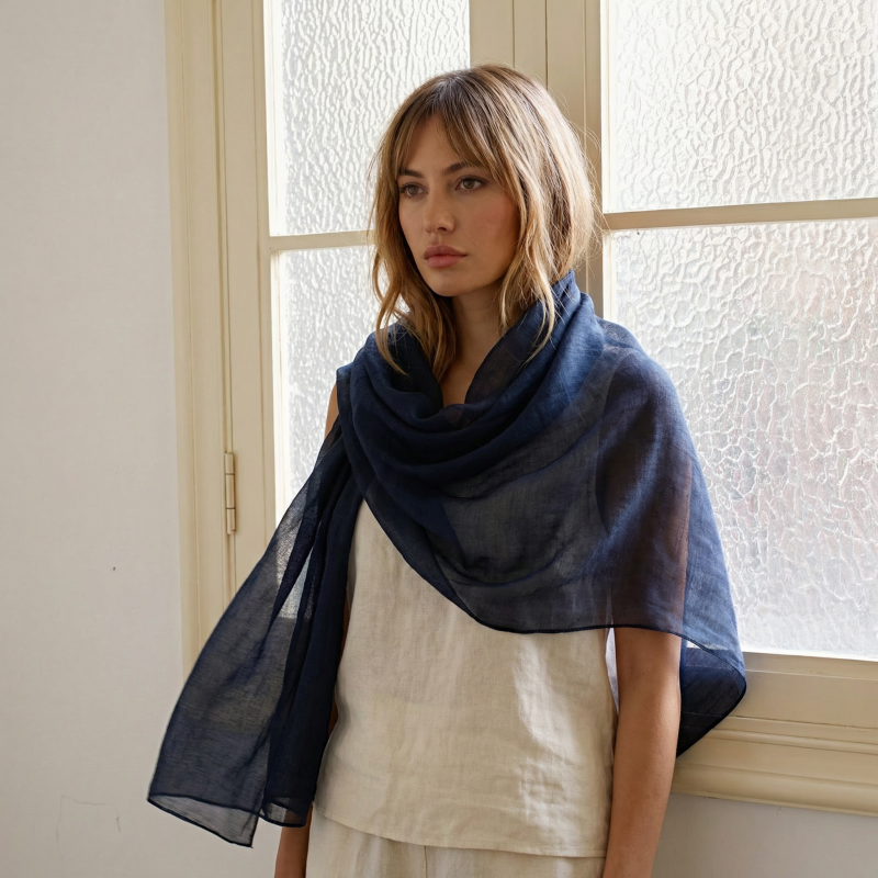 Eșarfă vaporoasă din modal și mătase, cu textură fină și transparentă.